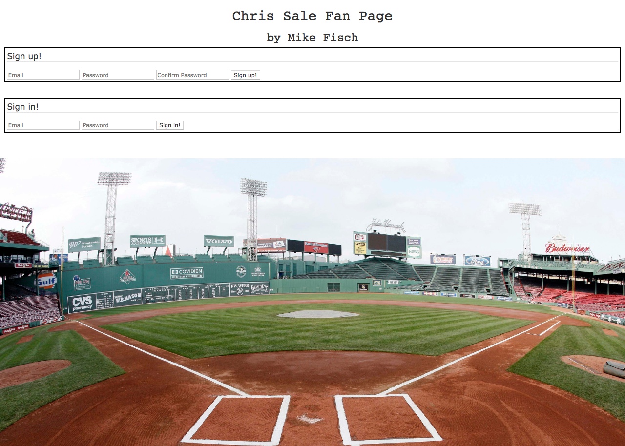 I built this web app for my Capstone project at General Assembly, dedicated to the Red Sox Pitcher Chris Sale. Users can create, update and delete comments and enjoy a slideshow of pictures and video of Chris Sale in action.